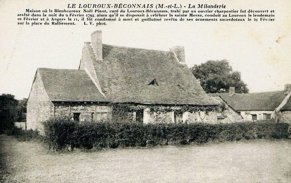 Arrivant sur ses quarante ans, l’abbé Pinot fut présenté à Monseigneur de Vivier, évêque d’Angers, afin qu’il reprenne la cure de Louroux-Béconnais. La décision fut rapidement prise et, est-ce par un pressentiment mystérieux, le nouveau curé pris possession de sa cure le 14 septembre 1788 en la fête de l’Exaltation de la Sainte-Croix [3]. Pendant deux ans, l’abbé Pinot fit de cette paroisse, la plus grande en superficie du diocèse d’Angers, un havre de catholicité. Les pauvres y affluaient pour y recevoir les secours de l’âme et du corps tandis que le Curé, vivant frugalement, utilisait les revenus de la cure pour venir en aide aux indigents.